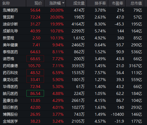 AI医疗办法股反回生跃,泓博医药、普蕊斯、迪安会诊均杀青20%涨停,好意思年健康3连板。