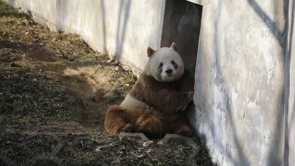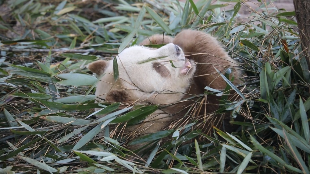 在位于陕西西安的秦岭大熊猫商议中心,棕色大熊猫七仔正在享受冬日时光,沿途感受“国宝”的闲散蓦地吧。