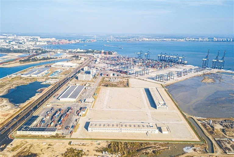 洋浦港封关运作神志和配套工程(无东说念主机像片)。新华社记者 蒲晓旭 摄